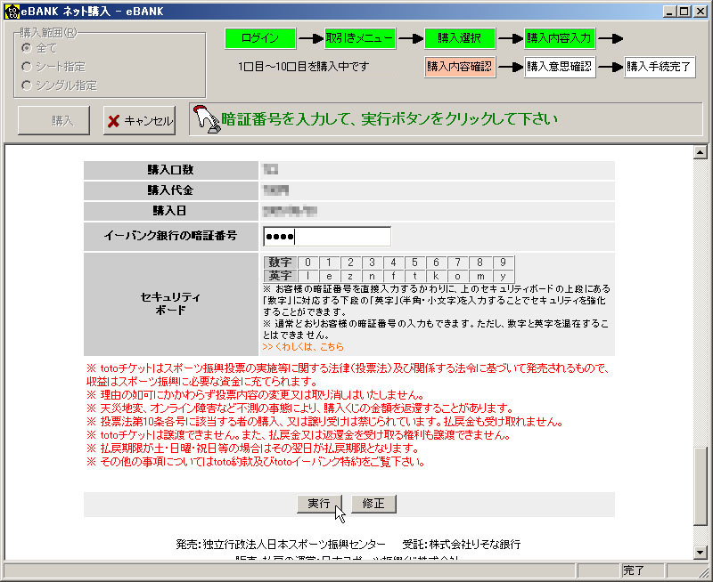 - ログインが完了すると自動的にtotoの購入処理を開始します。
