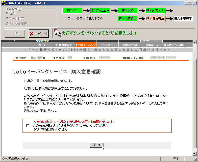- 購入意思確認画面が表示されます。「実行ボタン」をクリックします。